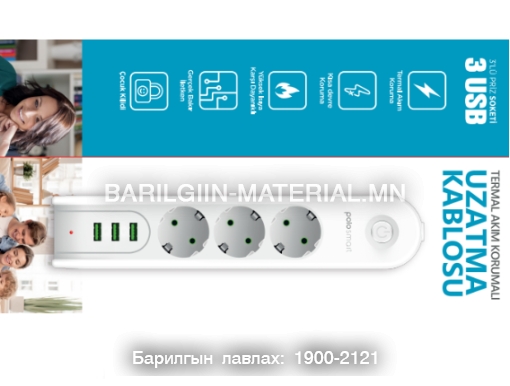 Уртасгагч 4оролттой 3usb 2 метр кабель утастай