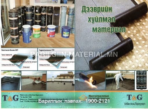 Ти энд Жи ххк нь ОХУ-н дээврийн хуйлмал материалын монгол дахь албан ёсны борлуулагч бөгөөд хаяг нь: сбд 6-р хороо МУИС-н 2-р байрны хойд талд Атимос трейд 3 давхар 306 тоот. утас: 77113500, 99999906, 99033505